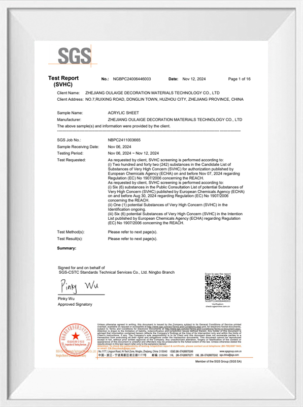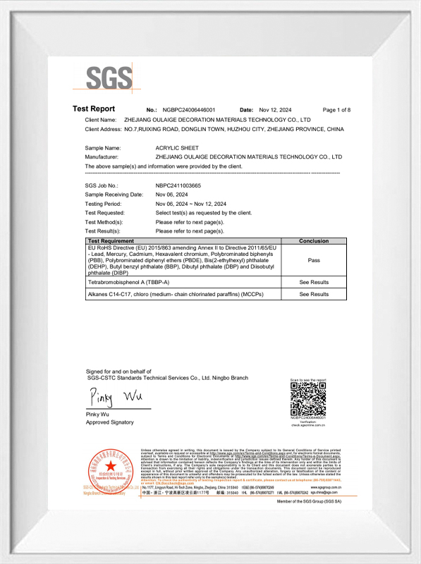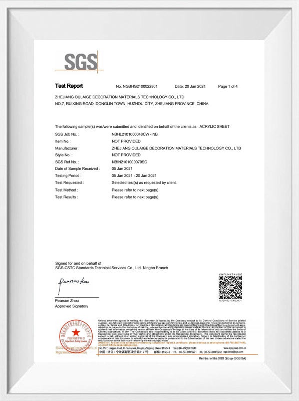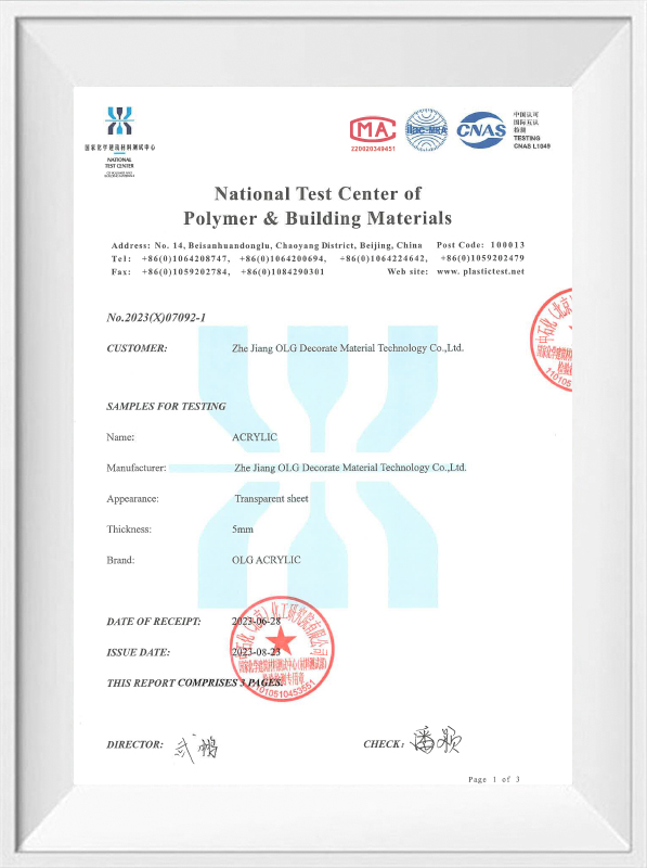 Hangzhou Oleg International Trade Co.、Ltd。は、環境に優しいプロセスで製造された厚いアクリルシートを提供することにより、これら2つのドメインを橋渡しします。例えば: